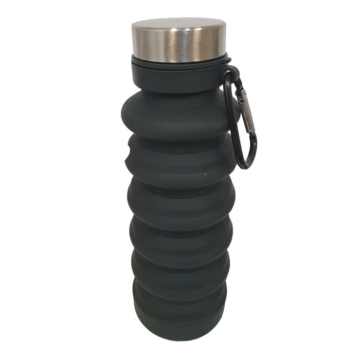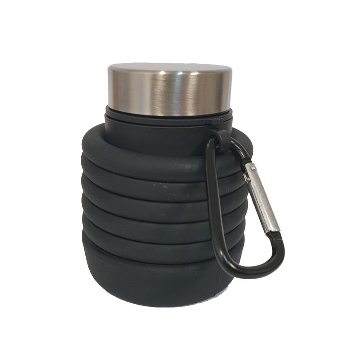 Сгъваема, гъвкава и издръжлива силиконова бутилка за вода, устойчива на счупване, оборудвана с карабинер от алуминиева сплав, така че можете да я закачите на раницата или чантата си за фитнес и да я носите навсякъде, със 100% издръжлив дизайн и специално проектирана да предотвратява досадните течове