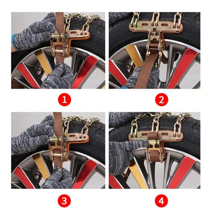 Комплект от 8 броя метални вериги за сняг – надеждно решение за безопасно шофиране в тежки зимни условия.