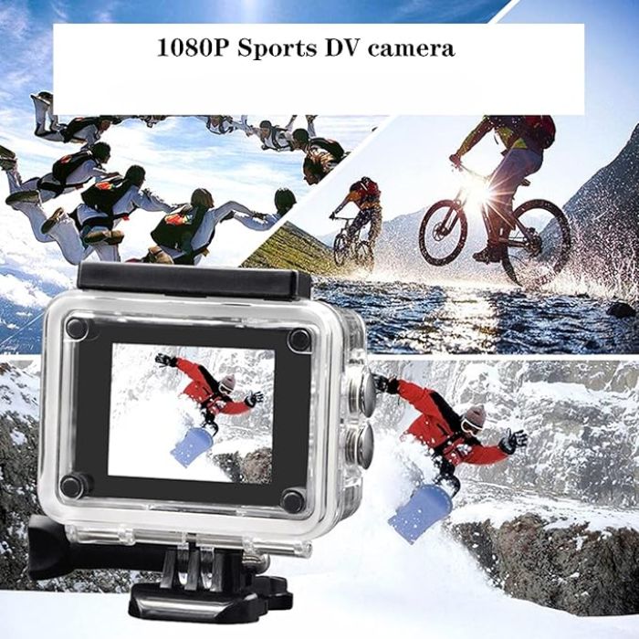 Спортната водоустойчива камера е оборудвана с 1080p Full HD 2,0-инчов LCD екран