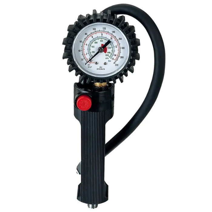 Професионален манометър с пистолет, предназначен за прецизен контрол и регулиране на въздушното налягане в автомобилни, мотоциклетни и велосипедни гуми. Идеален за автосервизи, гумаджийници и лична употреба.