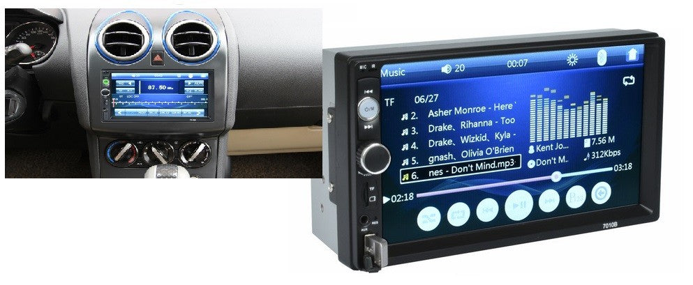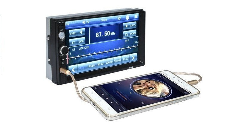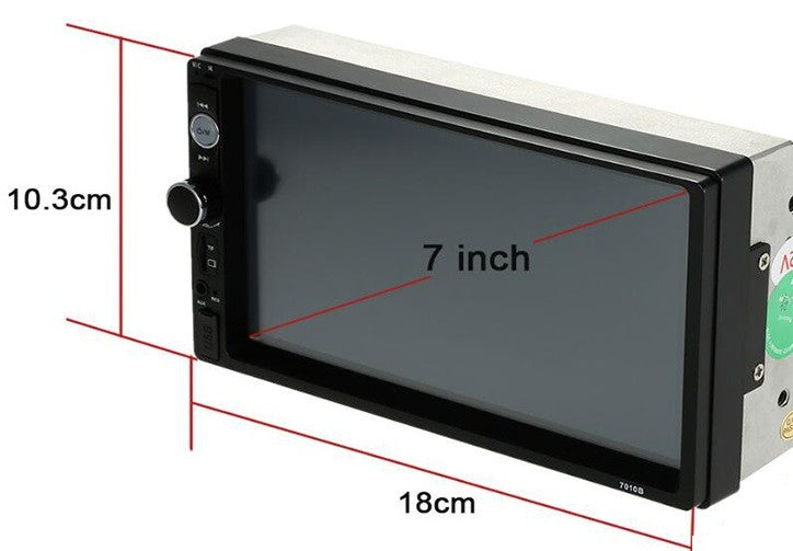 Мултимедия 2DIN 7010B с Bluetooth, USB, AUX, SD с голям 7" тъчскрийн дисплей, модерен дизайн и множество функции. Подходяща е за всеки автомобил със стандартен 2DIN отвор на таблото.
