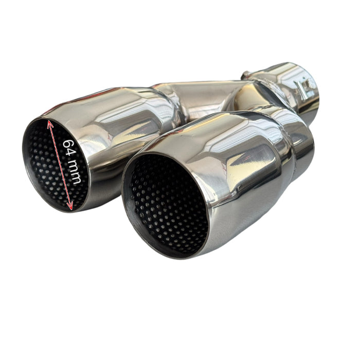 Накрайникът е изработен от никелиран метал.Начин на монтиране: Скоби Визия: Двоен.След монтажа накрайникът ще придаде спортен вид на автомобила.
