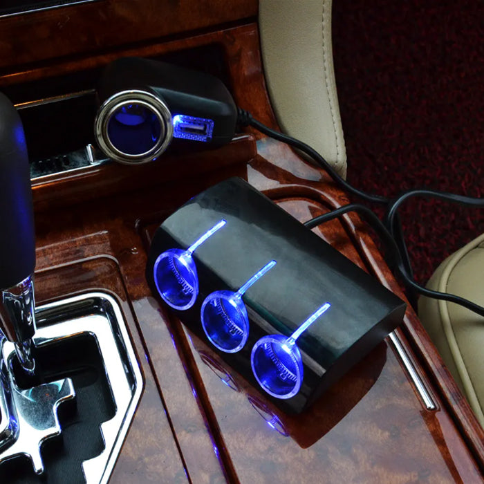Разклонител за запалка с 4 гнезда и 1 USB порт – удобен аксесоар за едновременно зареждане на до 5 устройства в автомобила. Подходящ за телефони, навигации, камери и други електроуреди. Включване директно в запалката на МПС.