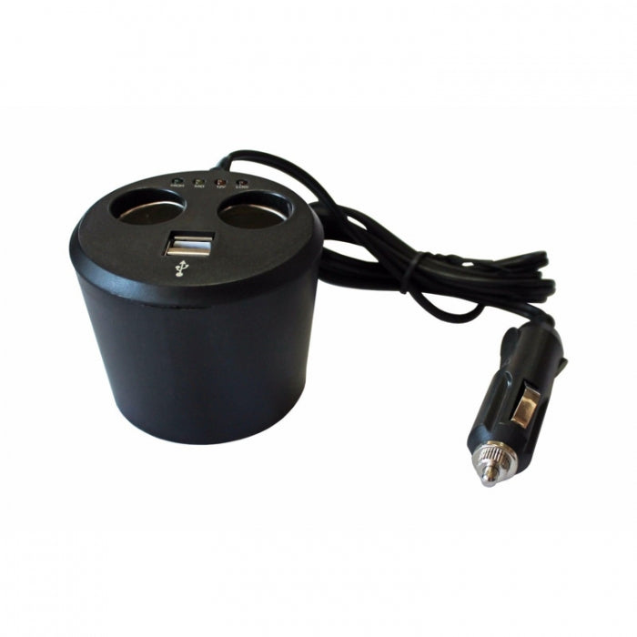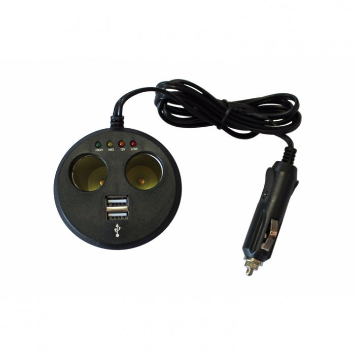 Разклонител с две гнезда за запалка и два USB порта.